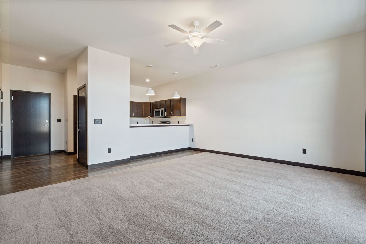 Indulge in simplistic, low-maintenance living with this beautifully designed second-floor condominium, ideally situated near the Maquoketa River and Historic Downtown Dyersville. Thoughtfully crafted, this condo offers 1 bedroom and 1 full bathroom, with an efficient layout that blends comfort and convenience. Step inside to a spacious living room, where large windows create a bright, inviting atmosphere and connect you to the surrounding community. The open-concept kitchen is designed with both convenience and entertaining in mind, featuring an eat-at island and stainless steel appliances. Enjoy time outdoors on your private northern facing deck or common easterly patio, a peaceful retreat to relax and unwind. This unit also includes garage space, adding everyday convenience. Perfectly positioned with easy access to downtown Dyersville's restaurants, boutiques, breweries, walking trails, and local attractions, as well as the scenic views, this condo offers the ideal blend of location, accessibility, and easy living. Whether you're seeking a full-time residence, a low-maintenance retreat, an investment opportunity, or a place to be closer to family, this condo delivers comfort and convenience in a highly desirable setting. Schedule your private showing today and experience firsthand all this property has to offer. $164,900 120 Twin Steeples Circle NE Unit 307 Dyersville, IA