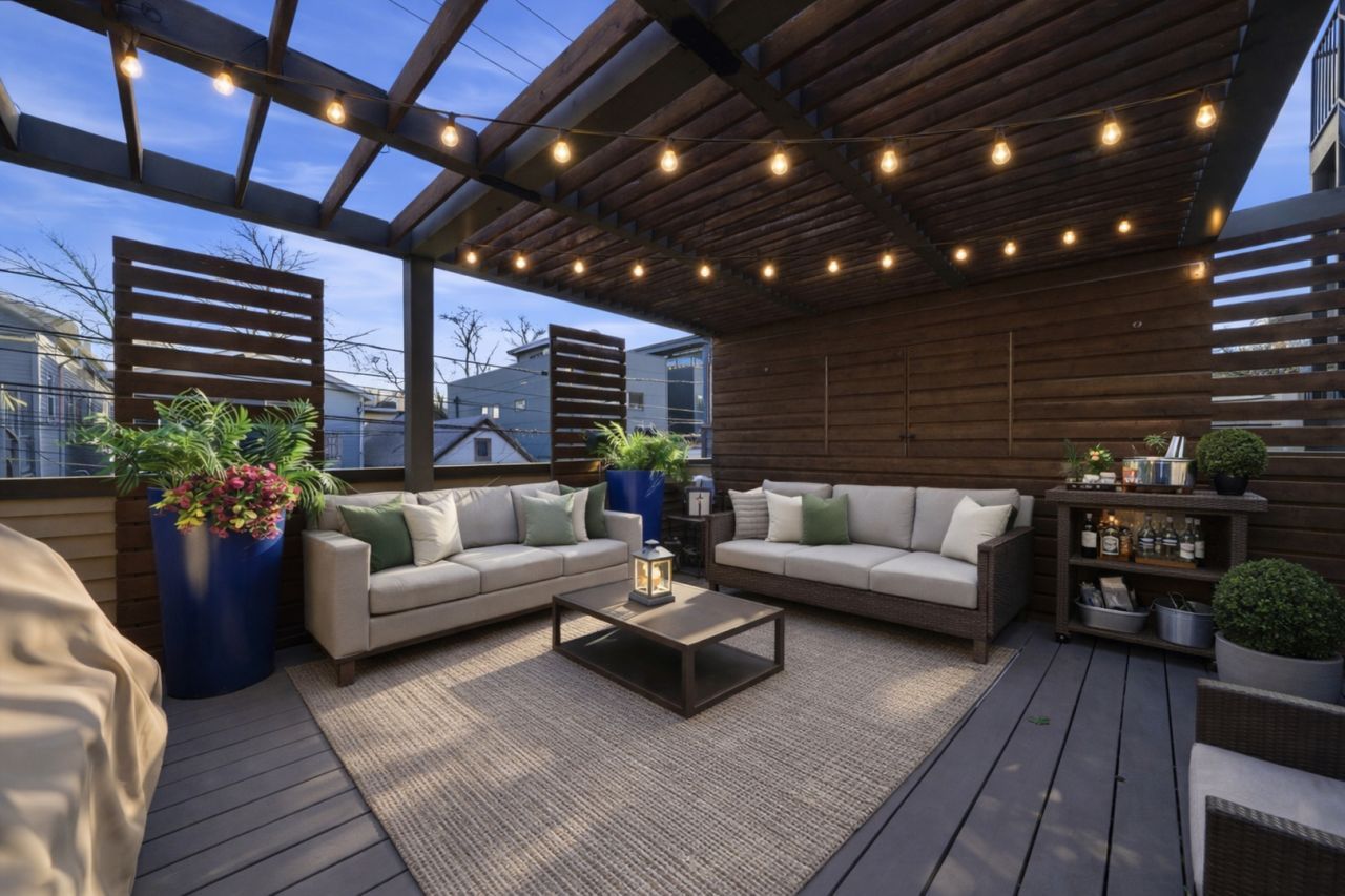 Situated on a beautiful tree-lined street in the heart of the East Village, this transitional-style home offers the very best of city living. Designed with an open, flowing layout, the home features clean lines, functional spaces, and thoughtful upgrades throughout. The main level is ideal for everyday living and entertaining, while the lower level offers a spacious second family room and a private fourth bedroom guest suite. Upstairs, you'll find three bedrooms, including a serene primary suite tucked at the rear of the home featuring premium storage and a spa-like bath complete with dual vanities, a floating tub, and a rain shower. A true laundry room on the lower level includes a utility sink and additional storage. Outdoor living is exceptional...The custom-designed backyard by Topiarius is perfect for summer entertaining, and the garage rooftop deck has been completely redone with new Trex flooring and a pergola. The main rooftop has also been upgraded with new tile flooring and features a built-in bar with grill, offering stunning skyline views of downtown. Additional upgrades and highlights include: two-car garage, professionally landscaped front yard with turf and pavers, newly finished basement with built-in entertainment system, custom built-ins in guest/nursery/office room, home audio system, Window treatments, and professionally organized closets. Just steps from parks, retail, restaurants, and bars, with a quick and easy commute to the Loop, this home truly lives better than new construction. Your search ends here! Explore the property in 3D - click the 3D button to take a virtual tour and walk through every detail.