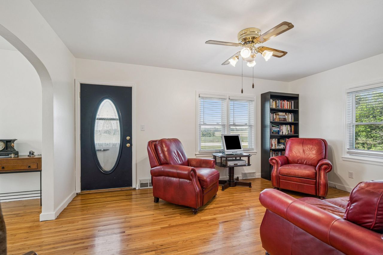 Awesome acreage on a hard surface road, located just one mile from Gilbertville! This well cared for family property has been in the family for decades! Stepping inside, the bright living room opens to the formal dining space, and has gorgeous original oa