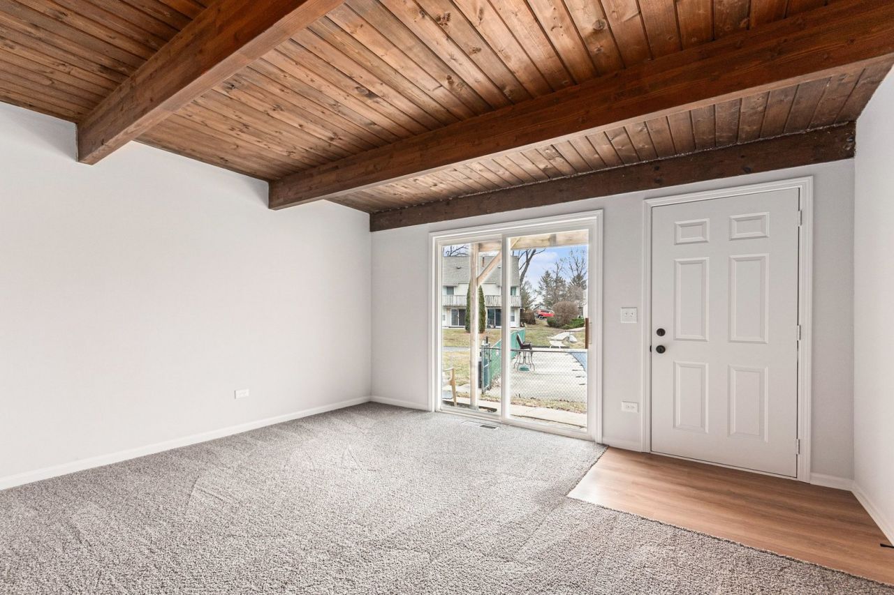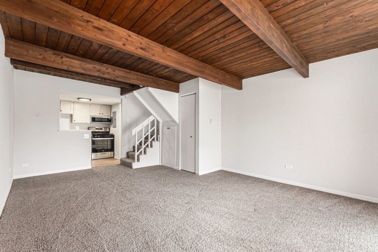 Wow, move-in ready condo in highly sought-after Fox Lake! This lovely 2-bedroom, 1.5-bath unit has been freshly painted throughout and welcomes you with brand-new carpet and character-filled ceiling beams in the spacious living and dining areas. The kitchen is a true standout, featuring beautiful cabinetry, sleek quartz countertops, and stainless steel appliances, with convenient access to a walk-out patio perfect for relaxing. Upstairs, you'll find two comfortable bedrooms also featuring fresh carpet and private balconies that offer stunning views of the surrounding landscape. Just steps away from the lake, a community playground, this home perfectly balances outdoor recreation with everyday convenience near local schools and shopping. Book your showing today to experience this lakeside gem!